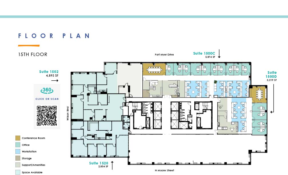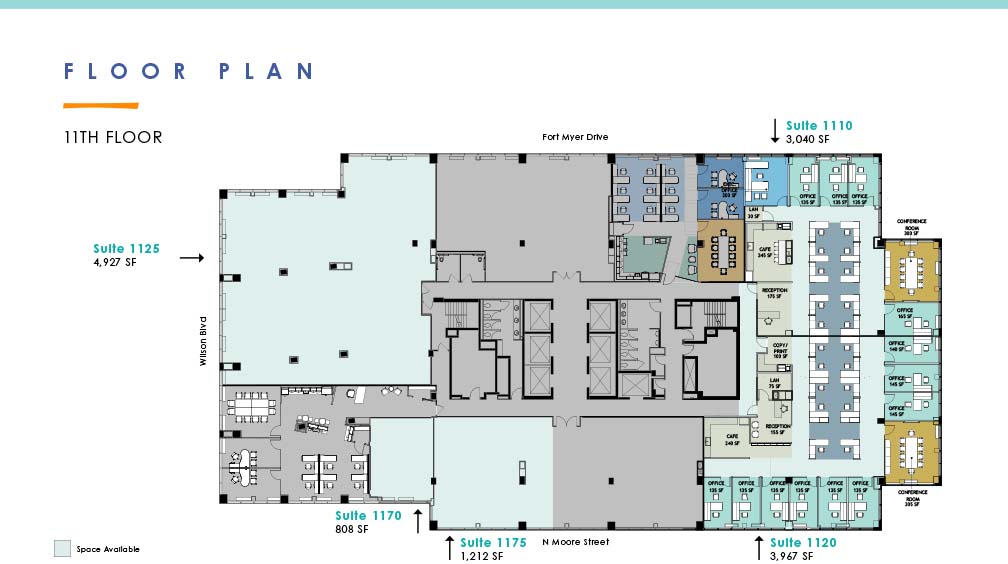 Available space ranging from 1,800 SF custom designed suites to 22,000 SF full floors makes Rosslyn City Center flexible and move-in ready. New tech-advanced conference space is available for the use of all tenants and is the perfect place for one-off meetings or all day team building exercises.